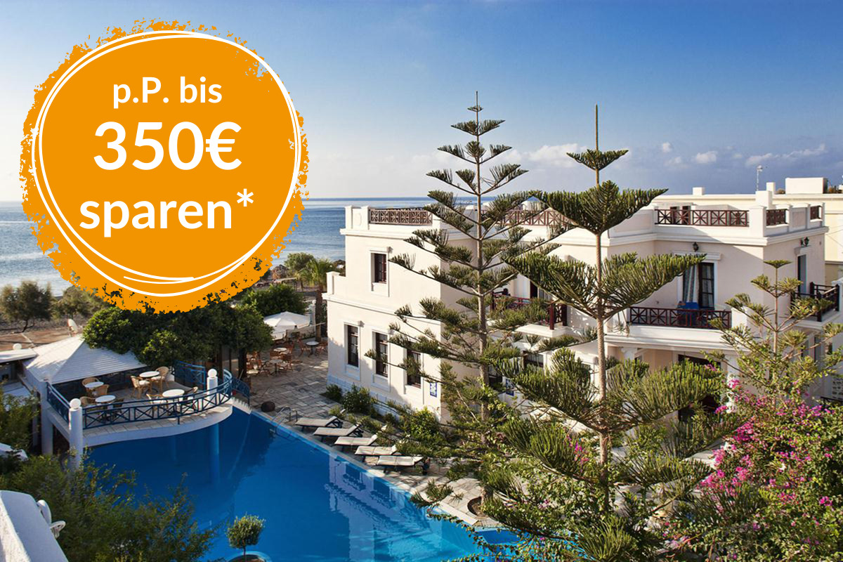 Wir meinen: Ein Hotel in schöner Strandlage im beliebten Perissa.
