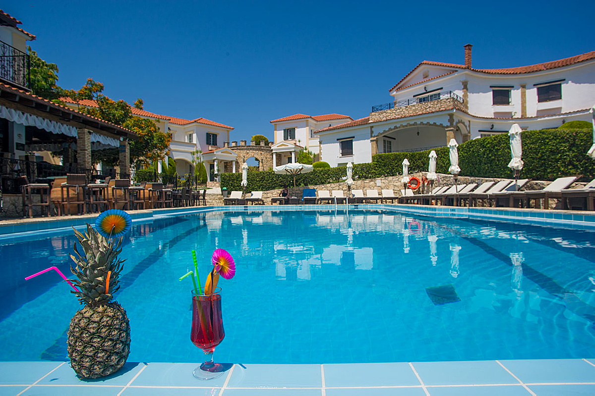 Fällen, mit Geräuschbelästigung zu rechnen. Bis zum Meer sind es ca. 2 km. Aufgrund der Lage empfehlen wir die Buchung eines Mietwagens oder auf Wunsch die Nutzung unseres Ausflugsprogramms. Zweckmäßig im griechischen Stil erbaut kann man hier legere typische Urlaubstage mit hervorragendem Preis-/Leistungsverhältnis verbringen. Im Garten befindet sich der Swimming Pool (Liegen und Sonnenschutz inklusive) und