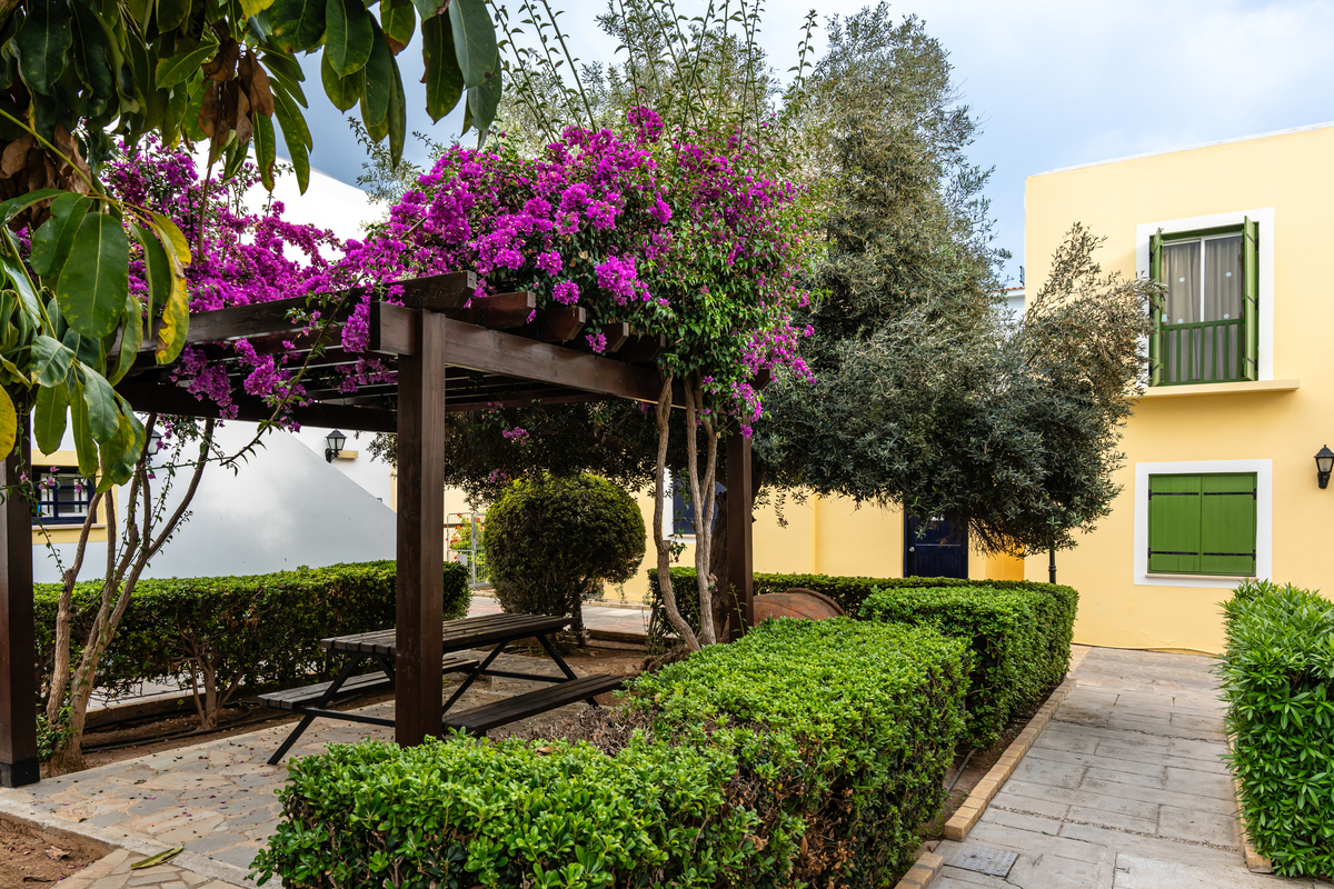 Lage & Ausstattung: Die weitläufige Anlage liegt unmittelbar am Meer, zwischen dem historischen Leuchtturm und den berühmten Königsgräbern. Das Zentrum von Paphos mit seinen Tavernen, Geschäften und archäologischen Sehenswürdigkeiten erreichen Sie bequem zu Fuß über die Uferpromenade. Die Anlage ist wie ein kleines Dorf gestaltet, mit gepflegten Gärten, niedrigen Gebäuden und viel Raum für Begegnung. Der große Außenpool mit Blick auf das Meer lädt zum Schwimmen und Sonnenbaden ein, während der beheizte Innenpool, die Sauna und das Dampfbad im kleinen Spa-Bereich für zusätzliche Erholung sorgen. Sportlich Aktive freuen sich über ein Fitnessstudio, Tennisplätze und verschiedene Freizeitangebote wie Beachvolleyball oder Tischtennis. Abends sorgen Themenabende und gelegentliche Live-Musik für Unterhaltung. Kulinarisch verwöhnt das Resort mit einem internationalen Buffetrestaurant, das zypriotische Spezialitäten ebenso bietet wie mediterrane Klassiker. Das À-la-carte-Restaurant „Divine Breeze“ (gegen