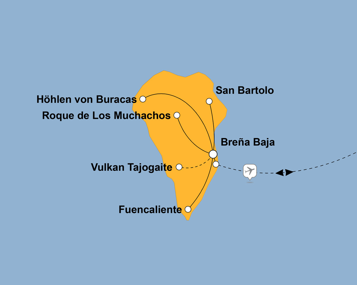 Heute fliegen Sie nach La Palma, einer abwechslungsreichen und eindrucksvollen Wanderreise entgegen. Die Kombination aus Palmen, Vulkanlandschaften und üppigen Wäldern macht La Palma bis heute zu einer der faszinierendsten Inseln der Kanaren – perfekt für Naturbeobachtung und Genussmomente.