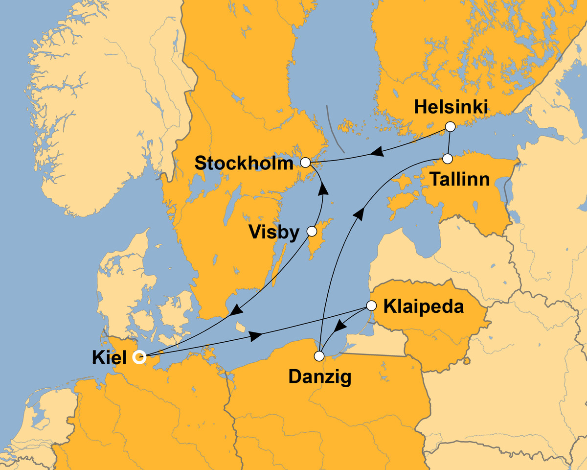 Kiel-Klaipeda-Danzig-Tallinn-Helsinki-Stockholm-Visby (Gotland)-Kiel