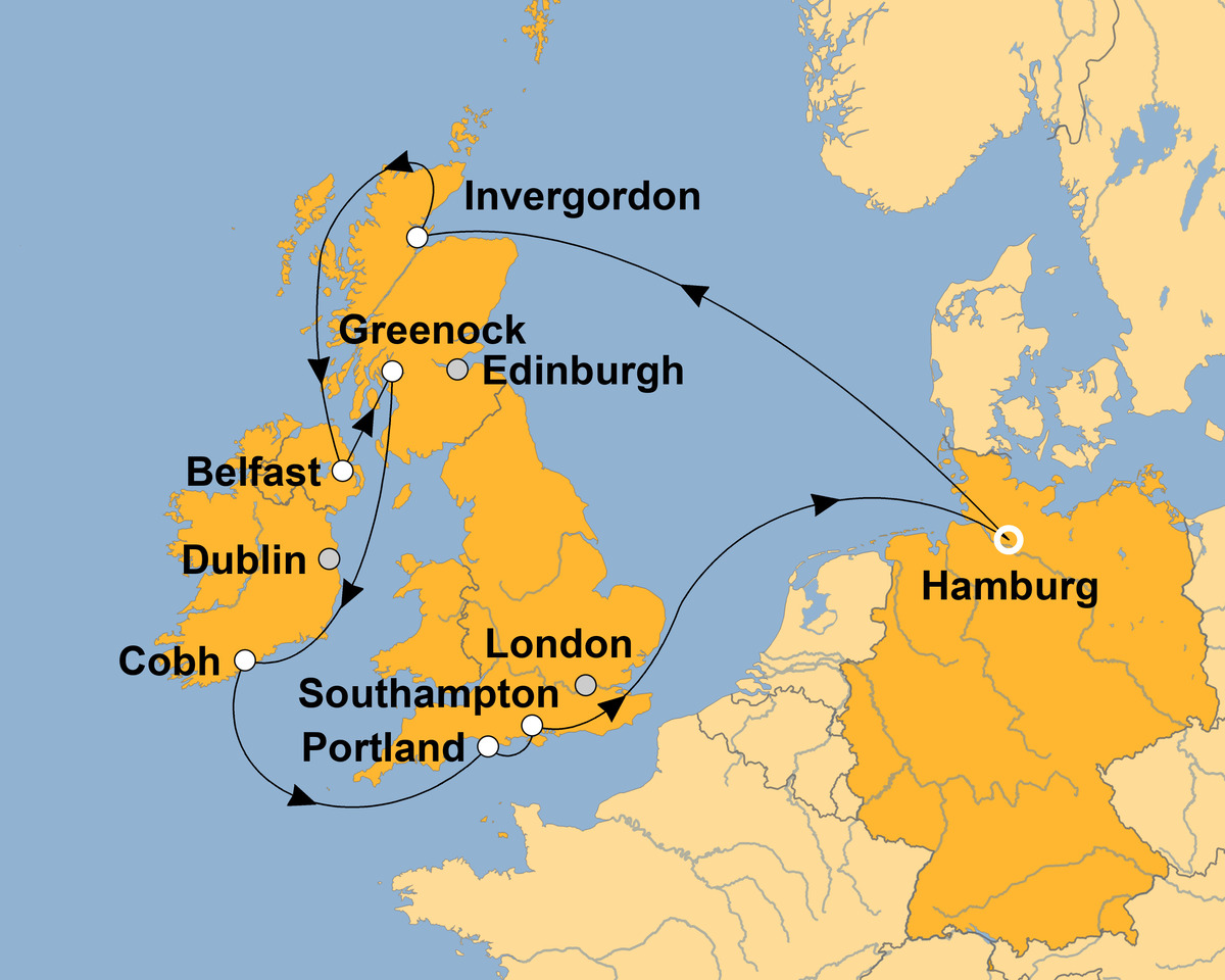 Von Hamburg aus Großbritannien und Irland in all seinen Facetten erleben und sich um nichts Gedanken machen zu müssen? Das geht auf dieser Kreuzfahrt mit MEIN SCHIFF 2. Erleben Sie unvergessliche Momente und genießen Sie Ihre Auszeit so, wie Sie es sich wünschen an Ihrem persönlichen Wohlfühlort.