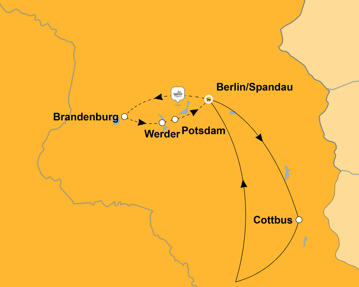 Im zauberhaften Lichterglanz des Advents führt Sie diese Kreuzfahrt über die idyllische Havel zu den schönsten Orten Brandenburgs. Genießen Sie entspannte Tage an Bord und lassen Sie sich in Berlin, Potsdam, Brandenburg und Werder von der festlichen Atmosphäre verzaubern. Stimmungsvolle Weihnachtsmärkte, glitzernde Altstädte und eine kabarettistische Weihnachtslesung machen diese Reise zu einem unvergesslichen Vorweihnachtserlebnis. Und zum Reiseabschluss erwarten Sie in Cottbus der Postkutscher bzw. die Baumkuchenfrau zu einer etwas anderen Stadtrundfahrt.