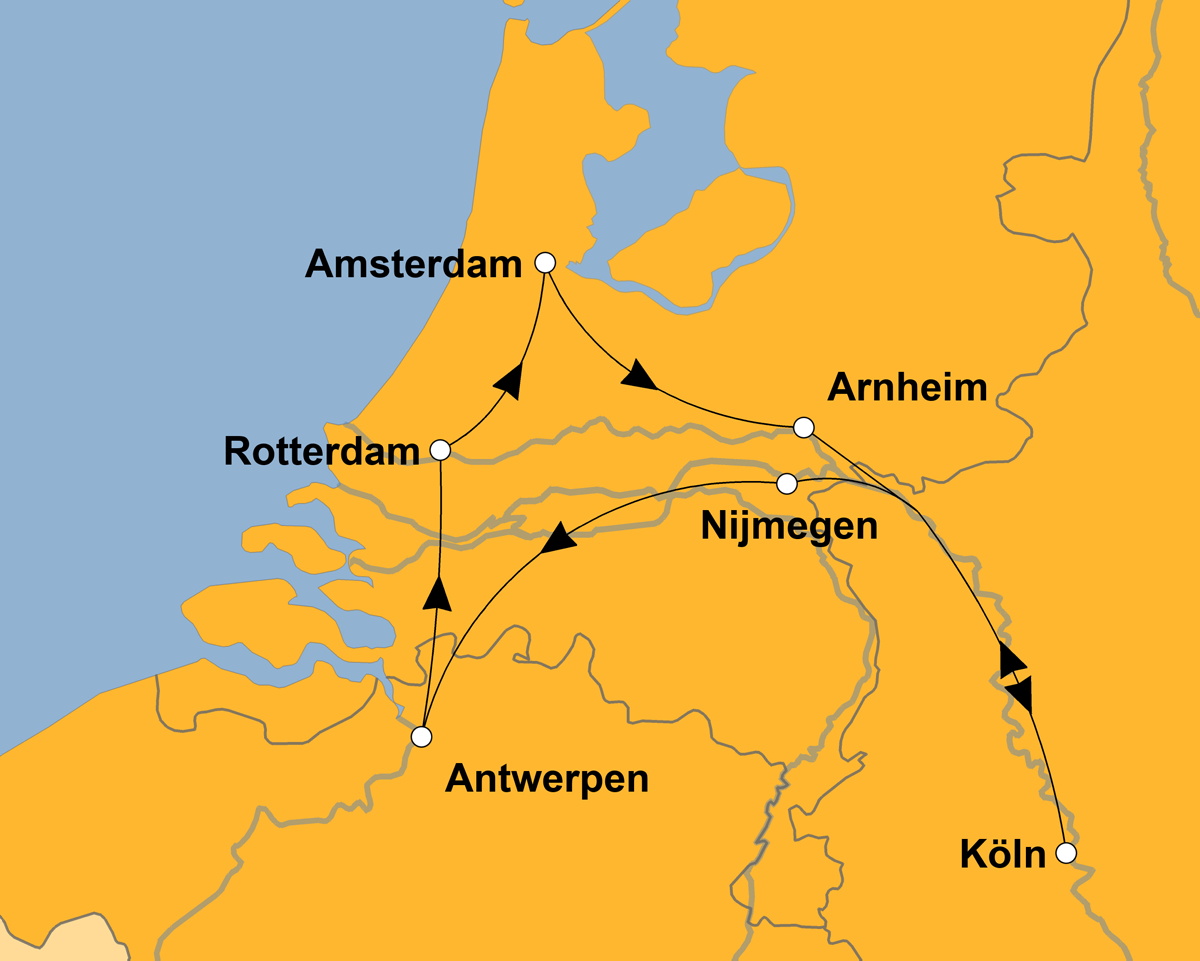 Köln - Nijmegen - Antwerpen - Rotterdam - Amsterdam - Arnheim - Köln