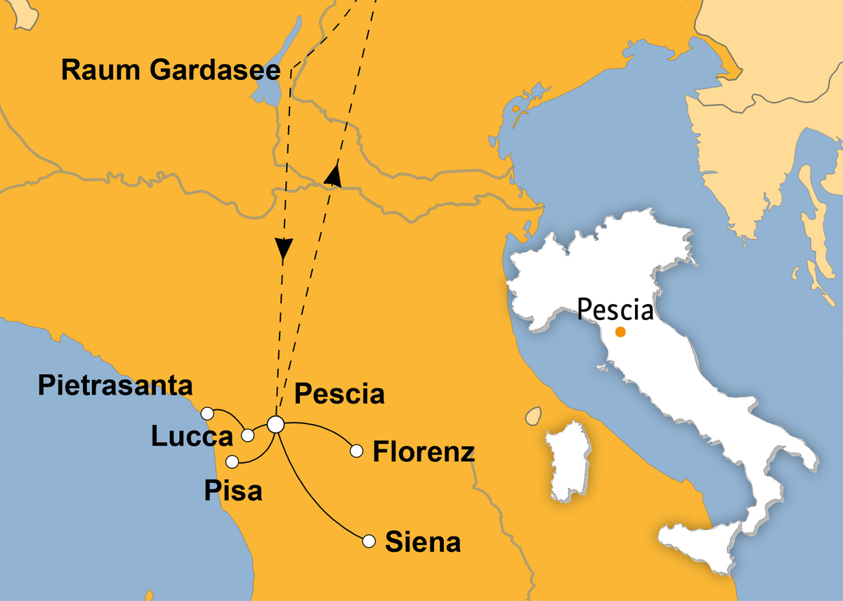 - Stadtführungen: Pisa, Florenz, Lucca und Pietrasanta mit örtlicher Reiseleitung