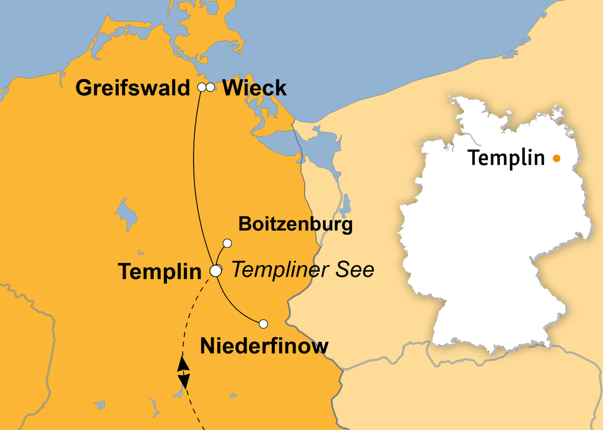Sie haben Lust auf eine entschleunigte Auszeit? Möchten Natur, Erlebnis und Erholung entspannt miteinander verbinden? Dann ist diese Reise wie für Sie gemacht – und sie ist im wahrsten Sinne des Wortes „nah am Wasser gebaut“. Ihr Hotel liegt direkt am Lübbesee und ist Ausgangspunkt für erholsame Tage in der zauberhaften Wald- und Seenlandschaft der Uckermark. Wasser begleitet Sie auf allen Stationen dieser Reise. Genießen Sie eine entspannte Seenrundfahrt mit herrlichem Blick vom Panoramadeck auf Templin, die Maria-Magdalena-Kirche und die Brücken. Der Schiffsführer erzählt spannendes aus Vergangenheit und Gegenwart – erholsam und lehrreich zugleich. Technikliebhaber kommen ebenfalls auf ihre Kosten: Am ältesten Schiffshebewerk Deutschlands in Niederfinow überwinden Schiffe seit 1934 einen Höhenunterschied von 36 Metern – ein technisches Meisterwerk, das bis heute fasziniert. Romantisch und märchenhaft präsentiert sich das Kleine Boitzenburger Land mit seinem imposanten Schloss Boitzenburg. Im historischen Marstall tauchen Sie bei einer kleinen Brauereiführung mit Verkostung und Mittagessen in die regionale Tradition ein. Danach bleibt Zeit, durch die kleinen Manufakturen zu schlendern und Schokolade, Kaffee sowie Eis zu probieren. Ein weiterer Ausflug führt Sie an die Ostseeküste in die Hansestadt Greifswald. Unterwegs entdecken Sie das idyllische Fischerdorf Wieck mit seiner historischen Zugbrücke und dem Blick über den Greifswalder Bodden. In Greifswald selbst erwarten Sie Backsteinfassaden, Klöster und der lebendige Marktplatz. Nach der Stadtführung bleibt noch Zeit für einen individuellen Bummel in der Altstadt. Freuen Sie sich auf tolle Tage voller Natur, Kultur und Genuss – abwechslungsreich und immer mit dem beruhigenden Blick aufs Wasser.