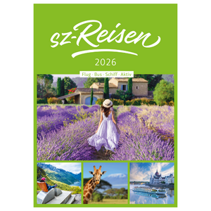 Unser sz-Reisen Hauptkatalog 2026 ist da! Freuen Sie sich auf unsere gesamte Reisevielfalt auf einen Blick und lassen Sie sich für Ihre nächste Traumreise inspirieren - ob Flug, Bus, Schiff oder Aktiv! Wir beraten Sie gerne.
